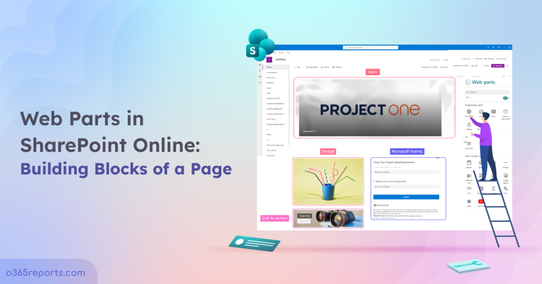 Web parts are the building blocks of SharePoint pages that turn a blank site into an information-rich, purpose-driven workspace. A centralized place for all needs where users can find information, take action, and collaborate with ease. Instead of hardcoding layouts or writing scripts, admins can simply choose a web part and configure it visually. Each web part is designed to handle a specific purpose, such as displaying text, listing documents, showing tasks, or embedding reports.